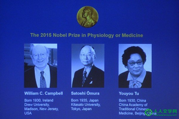 报道称,此次奖项是由诺贝尔生理学或医学将委员会主管乌尔班·兰达勒颁发的。以上三人因发现治疗蛔虫寄生虫新疗法获2015诺贝尔生理学或医学奖。