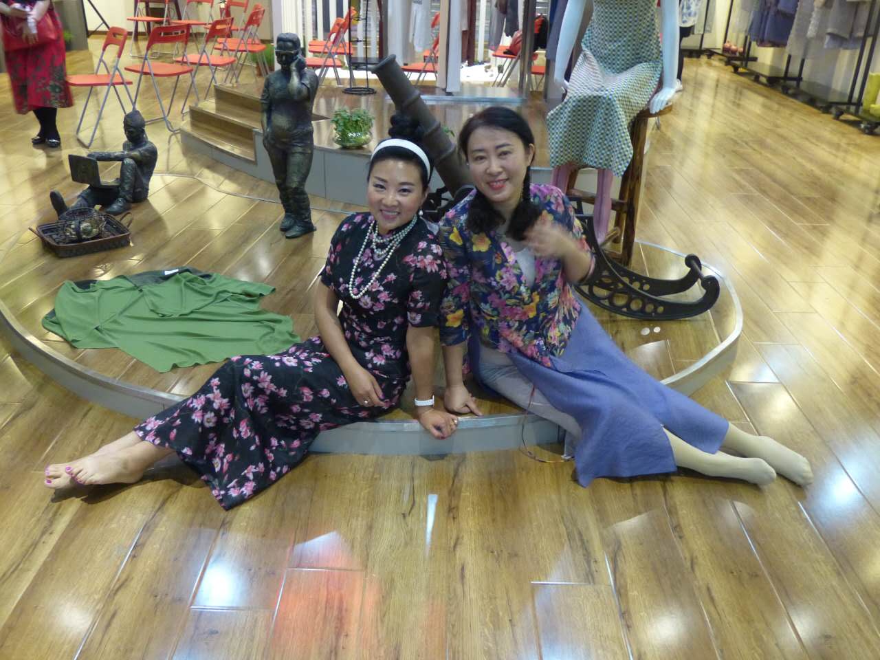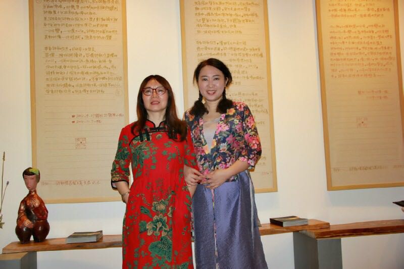 (左起)诗人梅林、一米阳光 整场诗会由著名诗人潇潇和总策划武眉凌主持。QIBUL柒布了新文化女装品牌创始人诗人阿B,特别为这场诗会现场增加了光影音乐和LORAIN香水的曼妙气息弥漫,使得众多诗人深情有加甚至出现几度哽咽的场面。现场女诗人们穿戴QIBUL新文化旗袍和香草腕花读诗,成为此次诗会的亮点。此场诗会聚集的诗人有七月、屈金星、王童、王博生、张金春、杨奕黎、弱水、夏花、一米阳光、梅林、刘雅阁、云水音等。云南著名画家刘宏特别寄来为这次诗会所作的画。他的作品曾在2016年中国诗歌春晚主会场展示,他还参加了2016中国诗歌春晚云南分会场活动并现场作画,受到众诗人的赞赏,又被邀请参加2016诗歌春晚颁奖典礼并现场作画。著名诗人王童、著名诗人王博生担当此场诗会的摄影。
