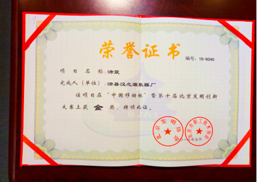 中国商界文学艺术家联合会传统工艺美术专业委员会副主任郝敬春研究恢复的古乐器“沛筑”在第十届北京发明创新大赛中脱颖而出,获得评委的一致认可,被评为大赛金奖。