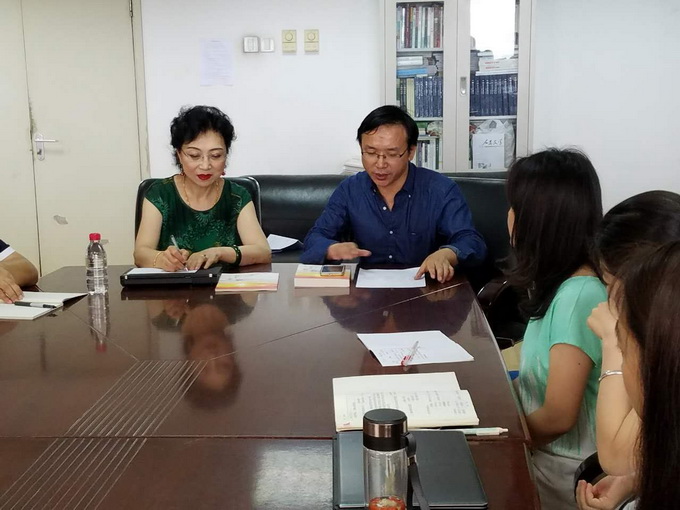 时针指向十点,校园正门一道轻盈风景线飘向主楼——如约而至的作家、诗人蓝帆(刘燕),随着谭武昌教授一起,走进主教学楼中文系会议室。