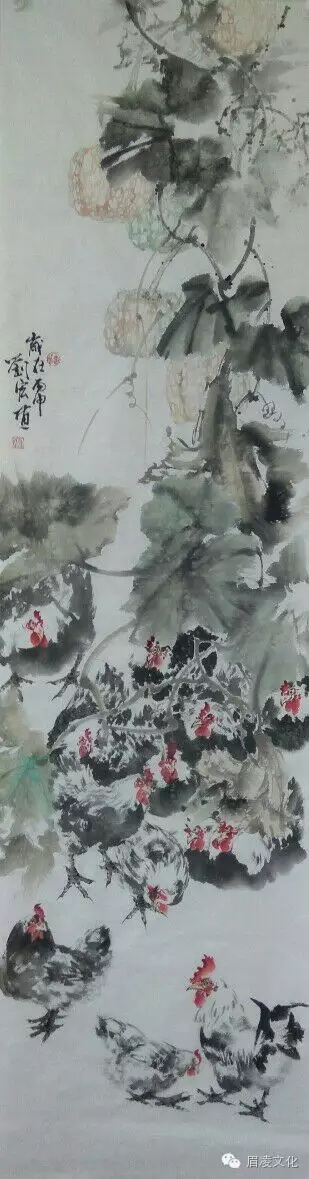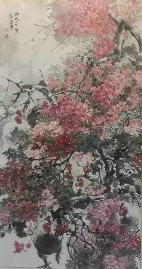 刘宏入选作品《躲入花丛中》 云南著名画家刘宏的作品《躲入花丛中》入选本次国粹万家精品书画展。刘宏主攻国画中的写意花鸟画,最擅长画鸡,他所画的鸡灵气十足,特别是公鸡雄健大气,自信张扬。